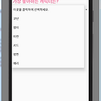 리스트 뷰(List view)리스트뷰란 ? 사용자가 정의한 데이터 목록을 아이템 단위로 구성하여 화면에 출력하는 ViewGroup의 한 종류이다. 일반 위젯 : 데이터를 직접 설정할 수 있다. , 체크박스 , 라디오 버튼어댑터뷰(선태 위젯) : 데이터가 담긴 Adapter를 이용하여 설정 간단한 리스트뷰의 예시 소스코드(Activity) 1234567891011121314151617181920212223242526272829303132package com.example.sh415.project4_1; import android.os.Bundle;import android.support.v7.app.AppCompatActivity;import android.view.View;import android.wi..