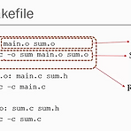 makefile에 Rule을 나타낸 그림이다. ':'을 기준으로 왼쪽은 target, 오른쪽은 dependency를 나타낸다. Shell lines에서 시작은 Tab다. ☞ makefile에서 comment처리는 '#'을 사용한다. makefile에서 한 라인에 다 적기 힘들어서 continue 해야하는경우는 '\'를 사용한다. ☞ make -p 는 make에 관련된 rule들을 프린트 해준다. ☞ dependency라인에서 제일 마지막에 생성되어야 할 타겟을 제일 첫번째로 적어준다. (It is important that all dependencies be placed in a descending order in the file.) ☞ 동일한 dependency일 경우의 예 ( main.o this.o..